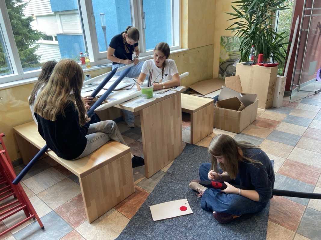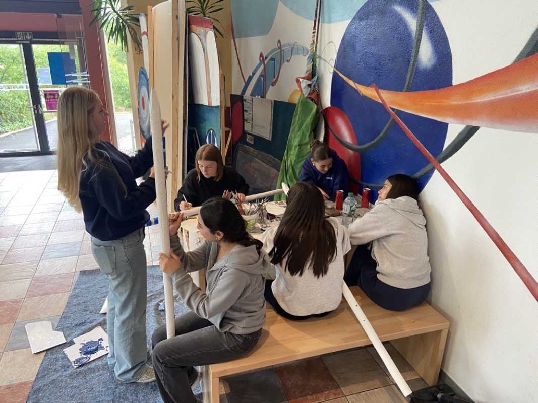 Kreativität ist bei dem Projekt „Makramee und Upcycling“ gefragt: Julia, Lena, Julina und ihre MitschülerInnen knüpfen Blumenampeln. In den nächsten Tagen werden sie noch Crêpes backen und Dinge upcyceln. Bei dem Projekt „Paint and Picknick“ restaurieren und bemalen die TeilnehmerInnen alte Deko-Stifte aus Holz mit selbstentworfenen Mustern. Sie schätzen die entspannte Atmosphäre bei diesem Projekt. Ebenfalls entspannt geht es in der „Schmuckwerkstatt“ zu: Mia, Jana und Elaine starten mit einem Frühstück in den Projekttag und stellen nach ihren eigenen Vorstellungen Armbänder und Ketten aus Perlen und Schnüren her.