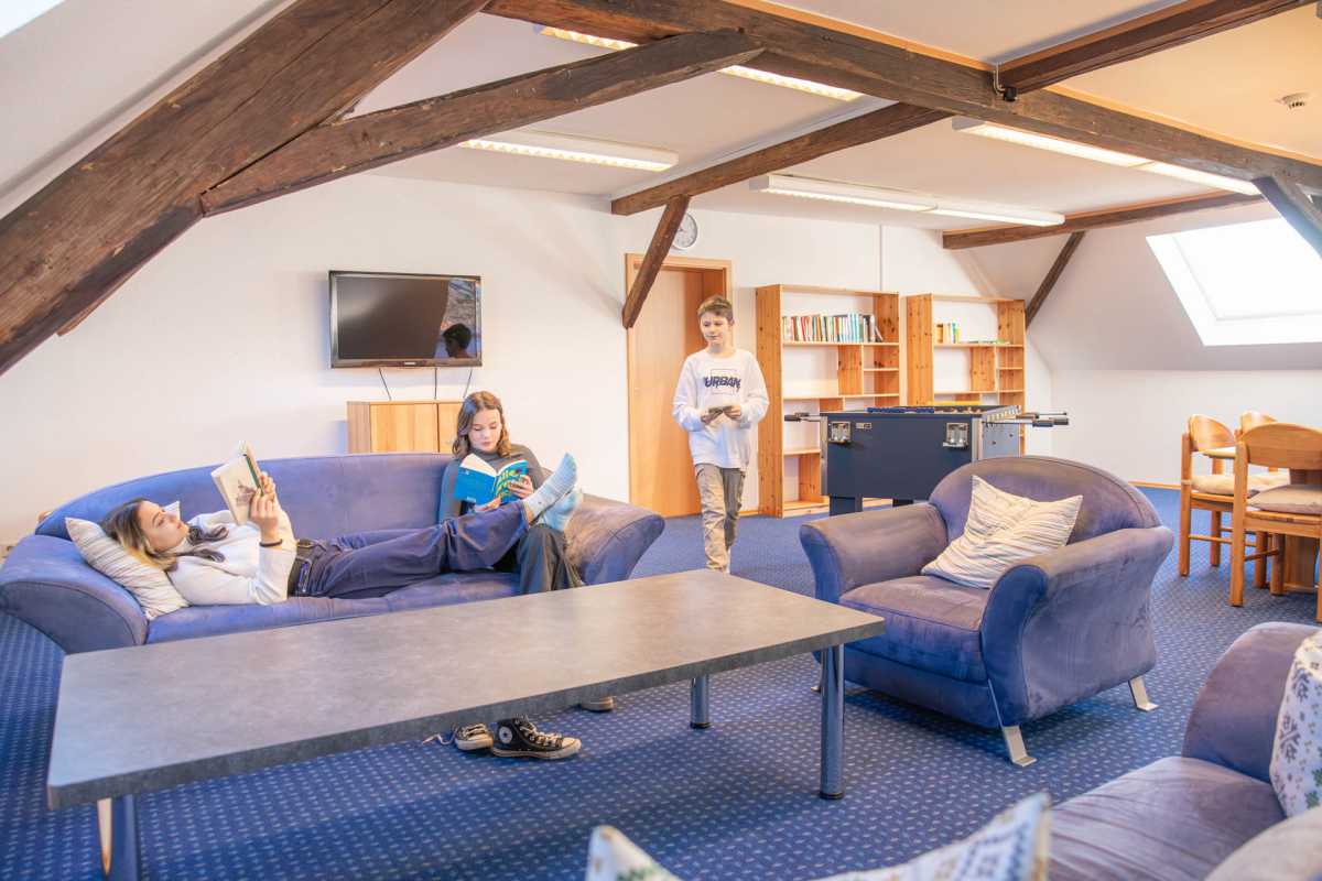 Das Wohn- und Raumkonzept ist auf die Bedürfnisse junger Menschen abgestimmt. Die Jüngeren schlafen in der Regel zu zweit im Zimmer, in der Oberstufe dürfen sich die Jugendlichen in Einzelzimmern gemütlich einrichten.